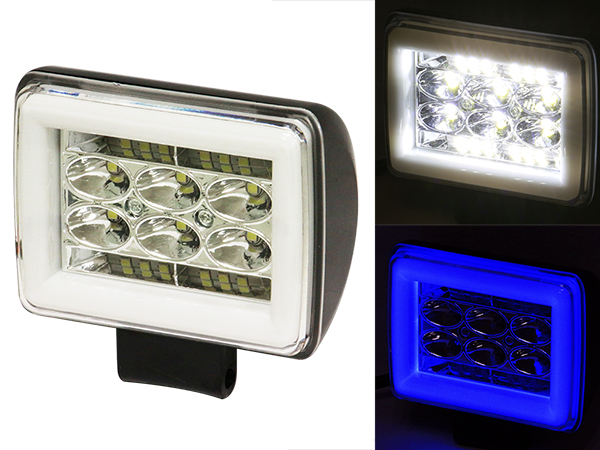FARO AUXILIAR RECTANGULAR 18 LED BLANCO ARO AZUL