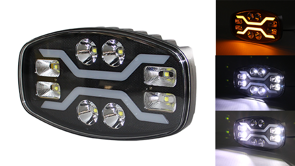 FARO AUXILIAR RECTANGULAR 24.6 x 14 cm 8 LED BLANCO H/L DRL AMBAR CON FUNCIONES